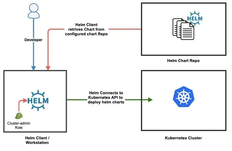 Helm의 기본 구조는 다음과 같습니다. (Helm 3.0 기준으로 확인한 내용입니다)